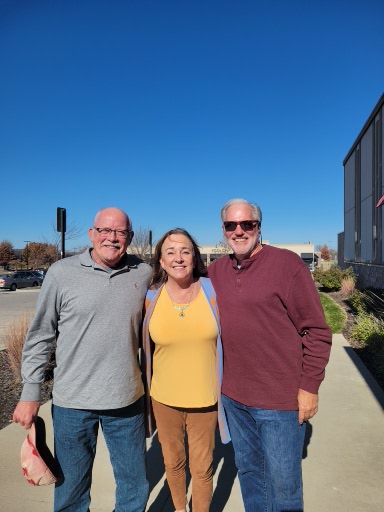 When Joe went into the AirForce we kind of lost track of each other but stayed in touch about our growing familes through Xmas letters. Mary let me know about his condition about two years ago and that is when I was able to connect with him again. I went to see him and Mary shortly after hearing about it. He was still Harvey, his smile, humor, and most inportant his dedication to his family. Attached is a picture from that visit.